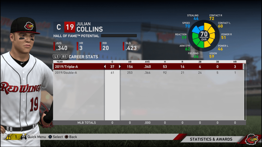 Obwohl ich immer wieder schwankte, wurde ich im weiteren Verlauf der restlichen Triple A Saison immer besser, sodass auch der Schwierigkeitsgrad sich steigerte, teilweise auf Allstar hoch, was ich bisher noch nie erreicht hatte. Immerhin ist das auch erst mein zweites MLB The Show Spiel, demnach war das schon eine Leistung.