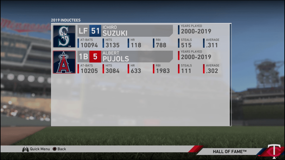 Außerdem wurden (siehe Bild) Ichiro Suzuki und Albert Pujols in die Hall of Fame aufgenommen, nachdem beide von 2000 bis 2019 mustergültige Karrieren hingelegt hatten.